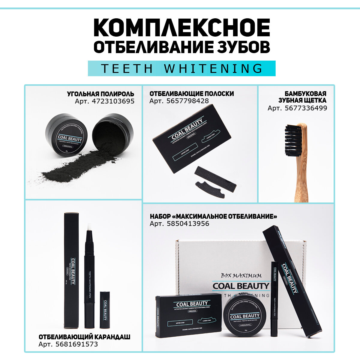 Угольная полироль для зубов COAL BEAUTY отбеливающая, для бережной чистки интересное: