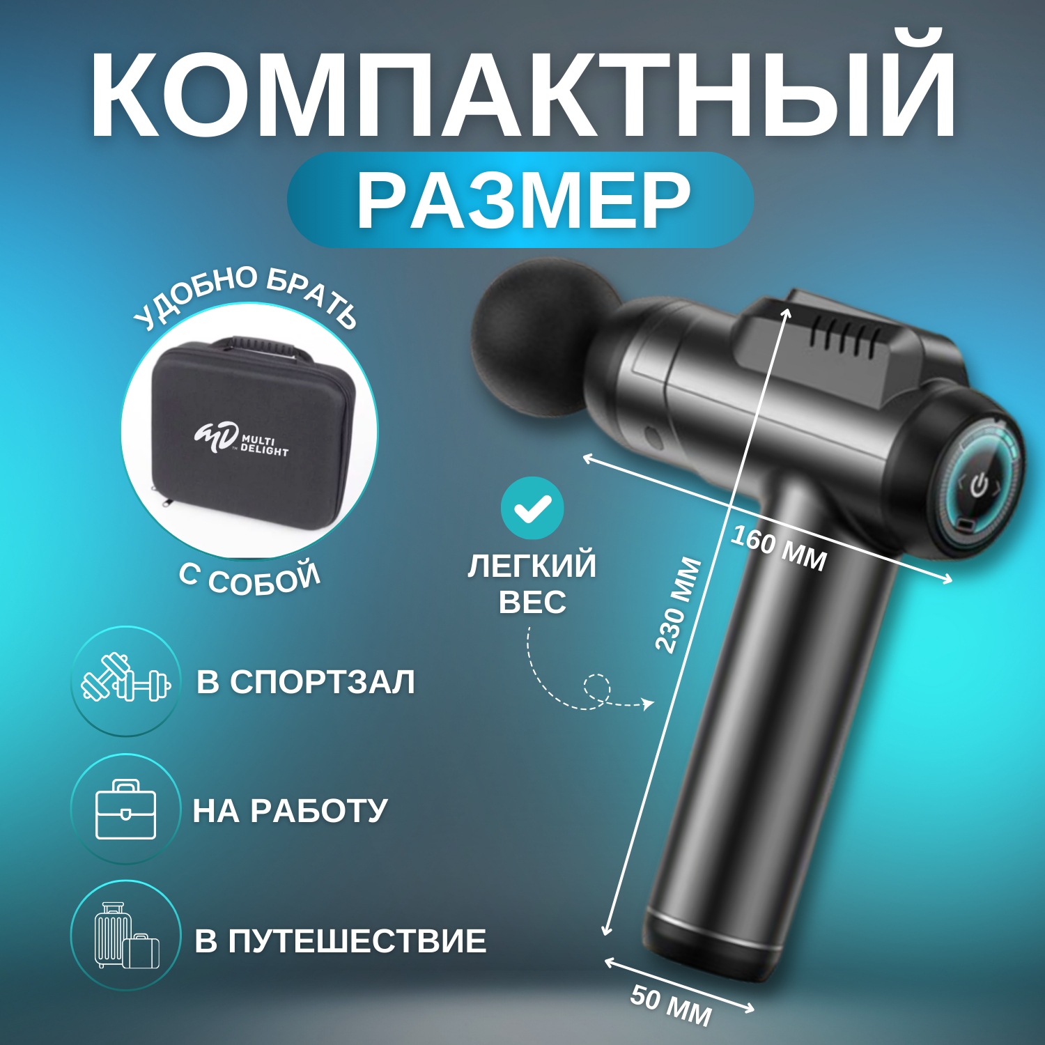 Перкуссионный электрический массажер для тела, шеи, плеч, спины, рук и ног, Multi Delight, Массажный ударный антицеллюлитный пистолет