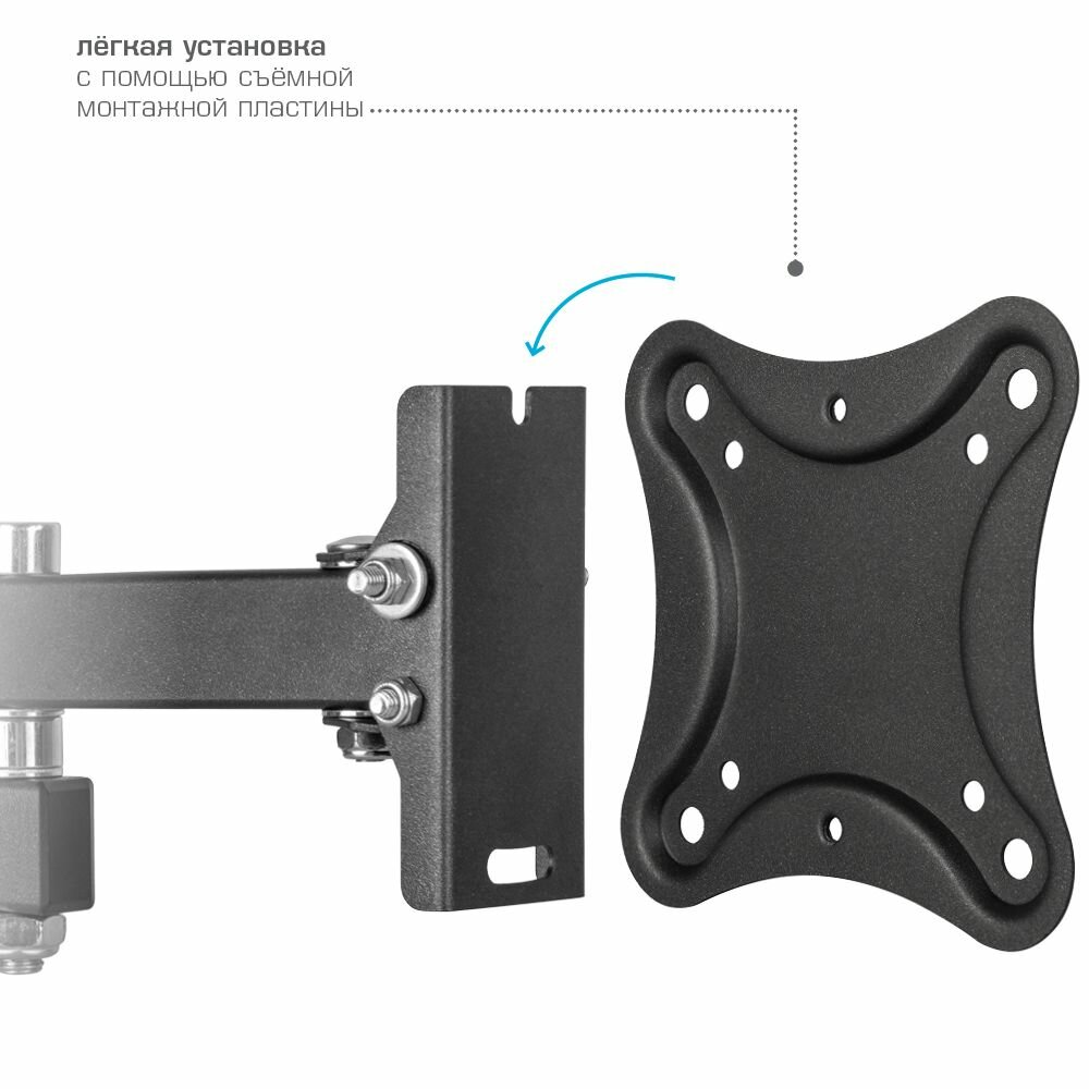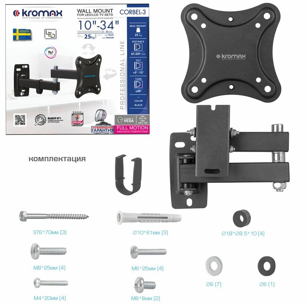 Кронштейн для телевизора Kromax CORBEL-3, 10-32", настенный, поворот и наклон, черный [90463] интересное: