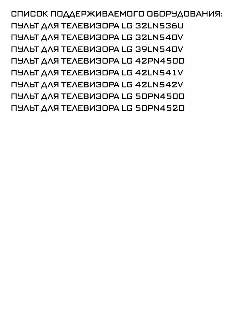 | Назначение | LG 32LB530U, LG 32LN536U, LG 32LN540V, LG 32LN541U, LG 32LN542V, LG 39LN540V, LG 42PN450D, LG 42LN540V, LG 42LN542V, LG 50PN450D |