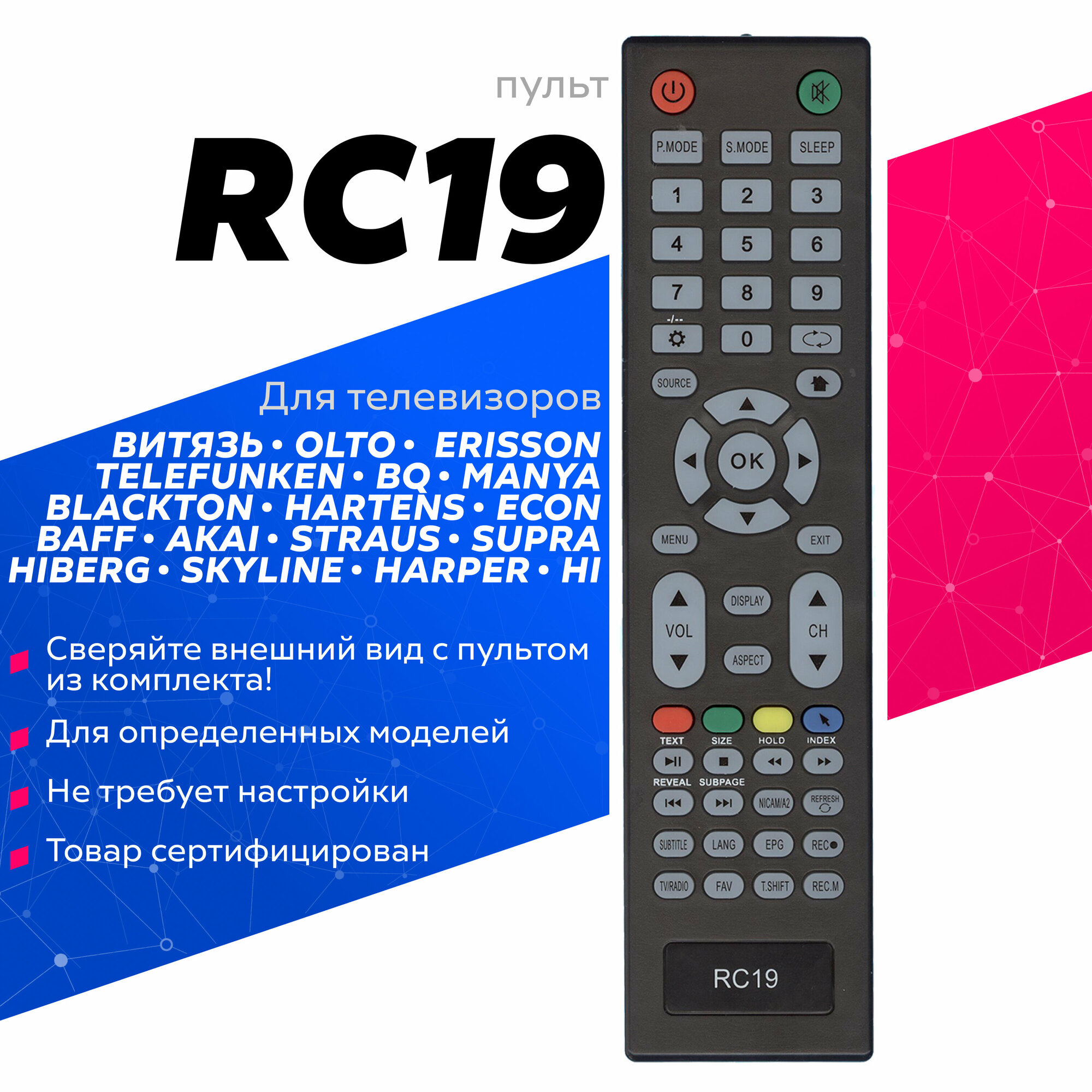 Пульт Huayu для телевизора VITYAZ RC19 интересное: