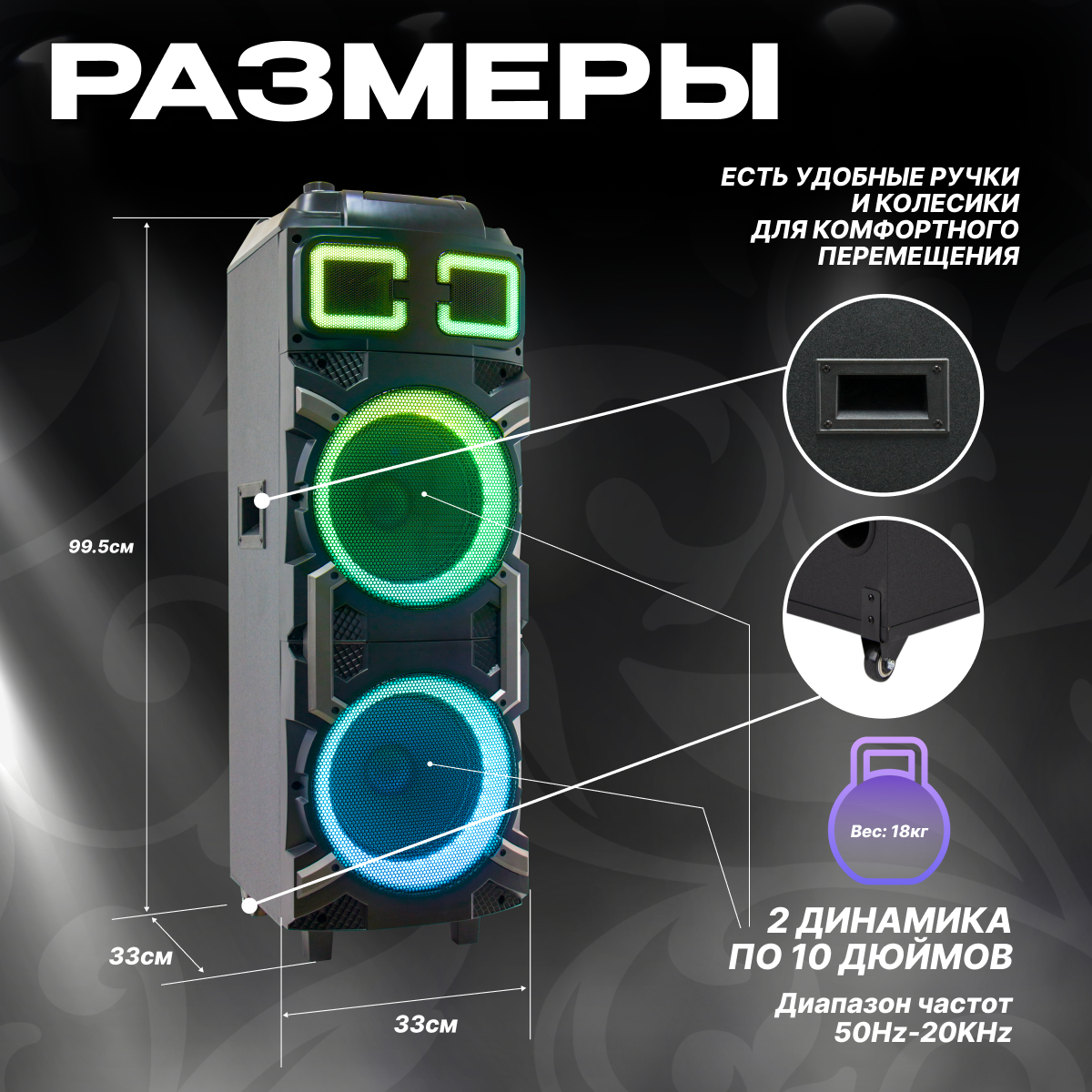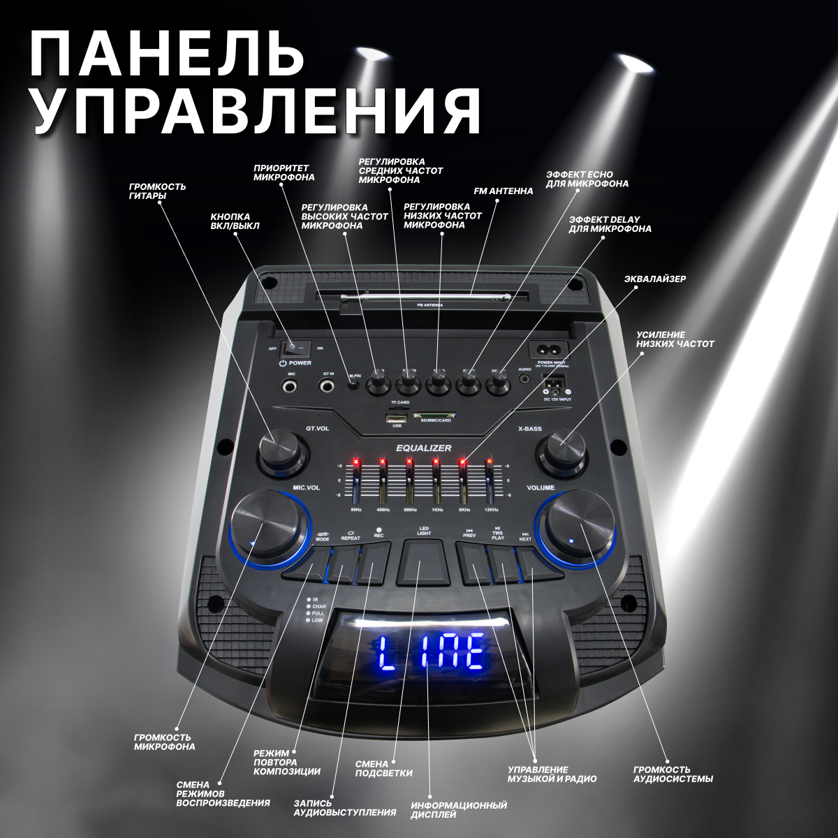 | Особенности | беспроводное подключение, караоке, пульт ДУ, регулировка тембра ВЧ, регулировка тембра НЧ |