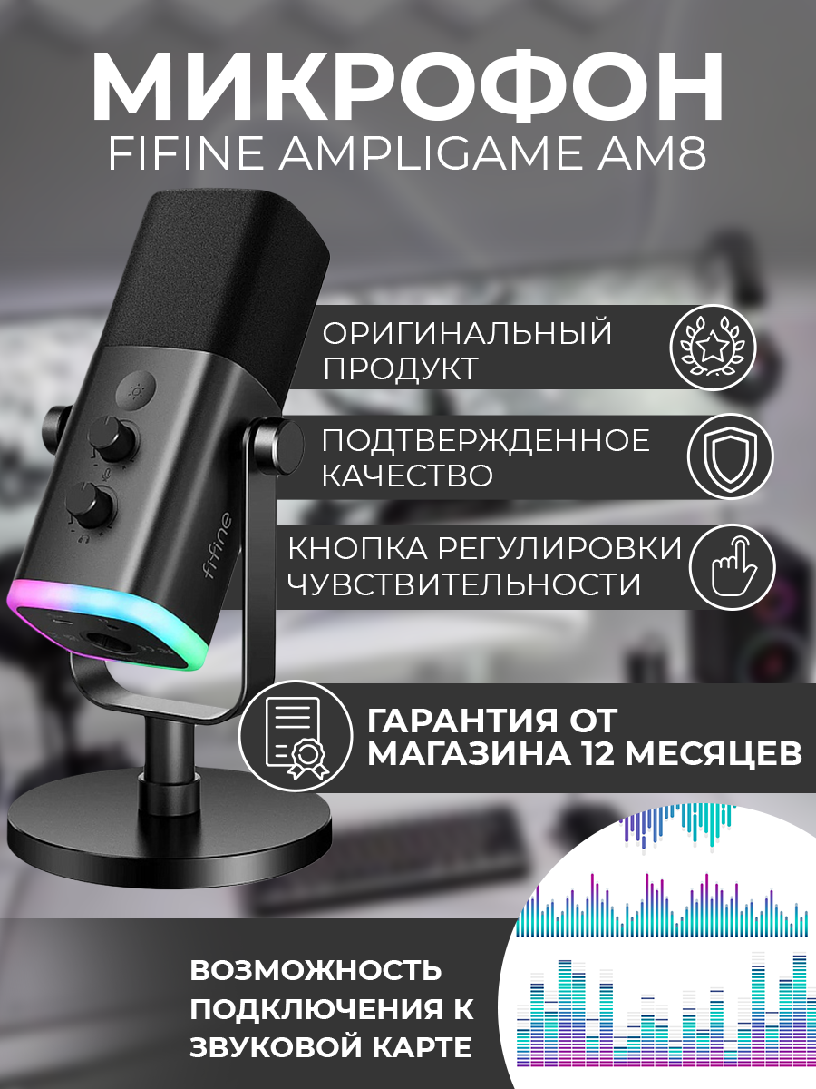 Ниже Вы можете прочитать отзывы на Микрофон FIFINE AM8, динамический с RGB подсветкой, USB / XLR, Black, ознакомится с подробными характеристиками, посмотреть интересные обзоры и фотографии на Микрофон FIFINE AM8, динамический с RGB подсветкой, USB / XLR, Black.