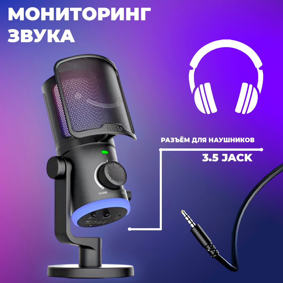 СохранитьПроводной микрофон Fifine AM6, черный, игровой, USB, RGB-подсветка интересное: