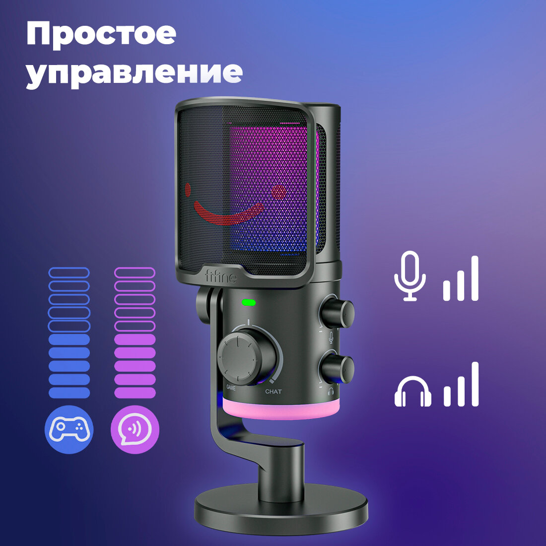 Конденсаторный USB микрофон Fifine AmpliGame AM6 (Black)