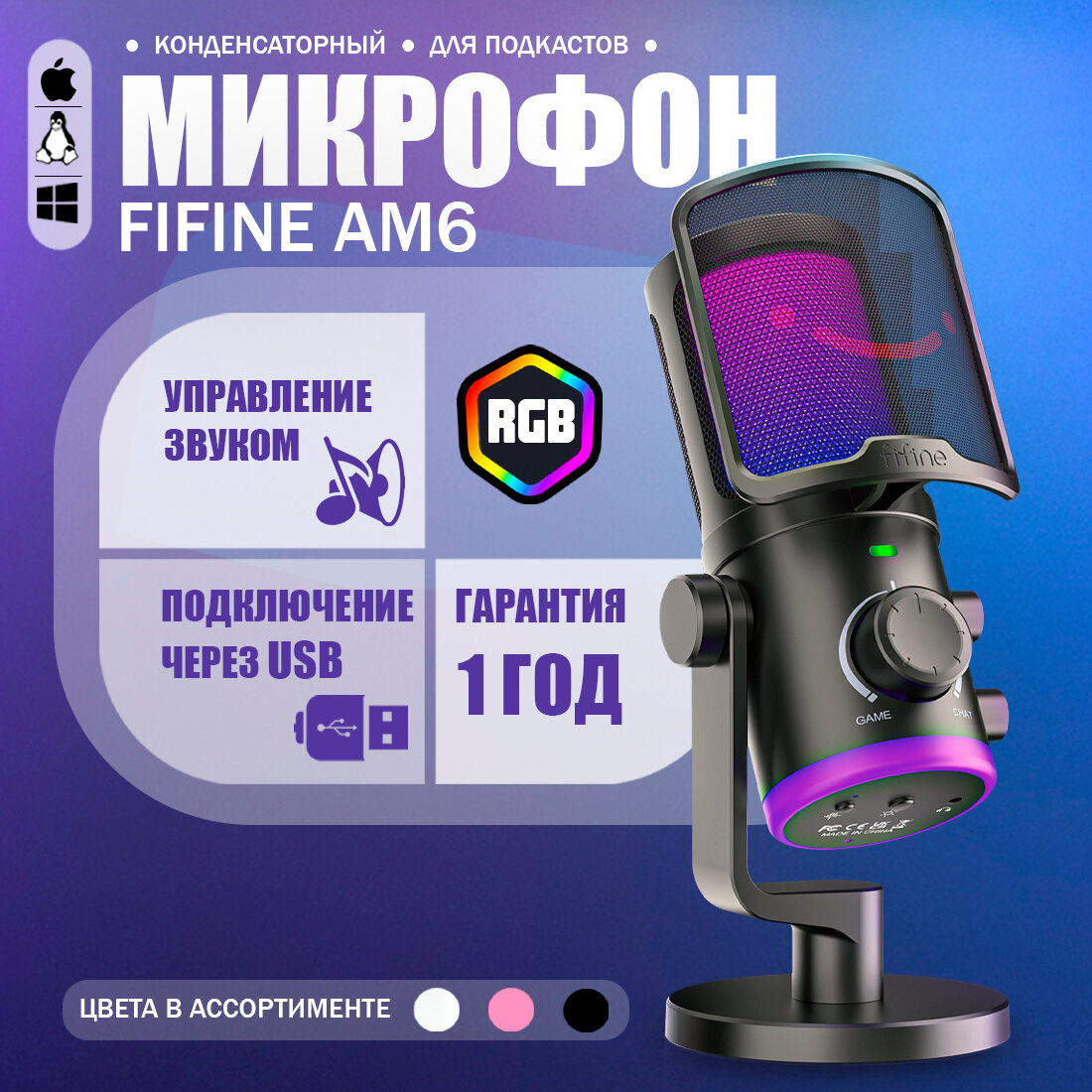 Ниже Вы можете прочитать отзывы на Проводной микрофон Fifine AM6, черный, игровой, USB, RGB-подсветка, ознакомится с подробными характеристиками, посмотреть интересные обзоры и фотографии на Проводной микрофон Fifine AM6, черный, игровой, USB, RGB-подсветка.