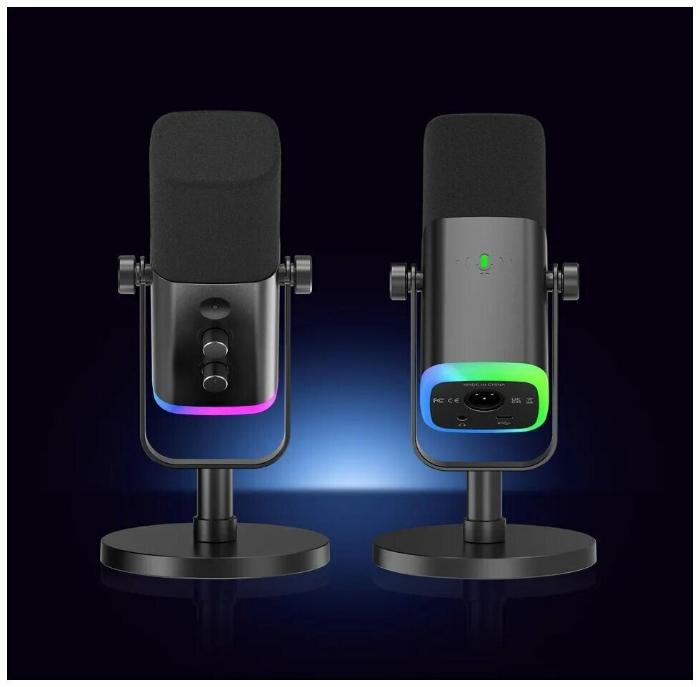 Проводной микрофон Fifine AM6, черный, игровой, USB, RGB-подсветка