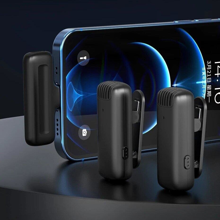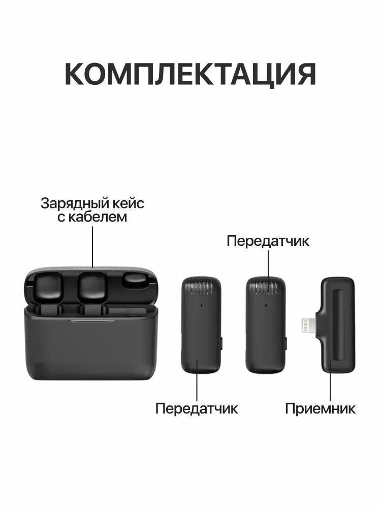 Микрофон петличный беспроводной, с шумоподавлением, петличка, для мобильного телефона, разъем Lightning, для Iphone, черный, 2шт