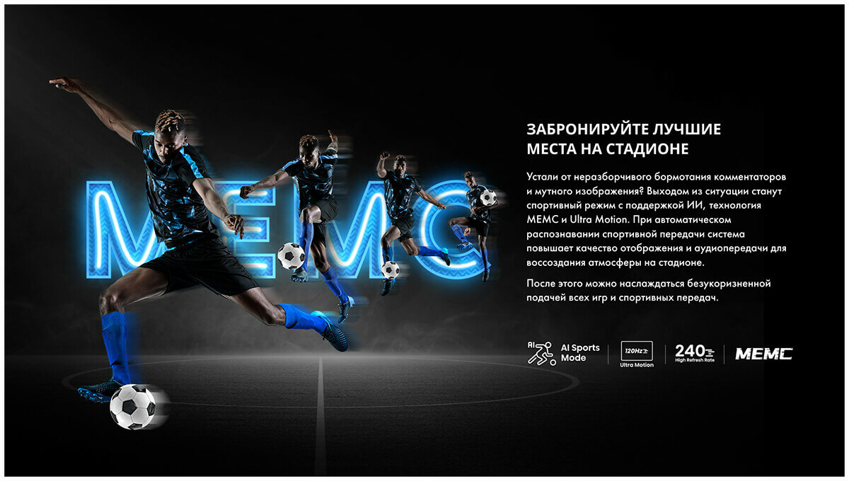 | Дополнительная информация | Процессор: 4-ядерный MT9618 Wi-Fi: IEEE 802.11 a/b/g/n/ac/ax (2.4G 5G and 6G) Bluetooth: версии 5.1 Интернет браузер: Odin с HbbTV 2.0.3 Частота экрана: 120 Гц (исходная) / 144 Гц (VRR) |