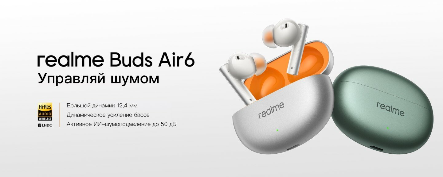 СохранитьБеспроводные активные Bluetooth наушники realme Buds Air6 RMA2402 серебряный интересное: