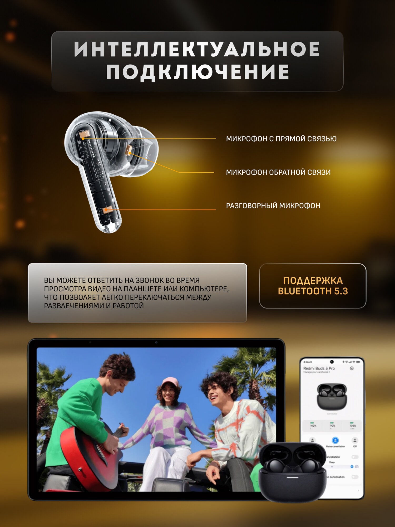 СохранитьБеспроводные наушники Redmi Buds 5 Pro, Midnight Black (Черный), внутриканальные, BT 5.3, 2023 интересное: