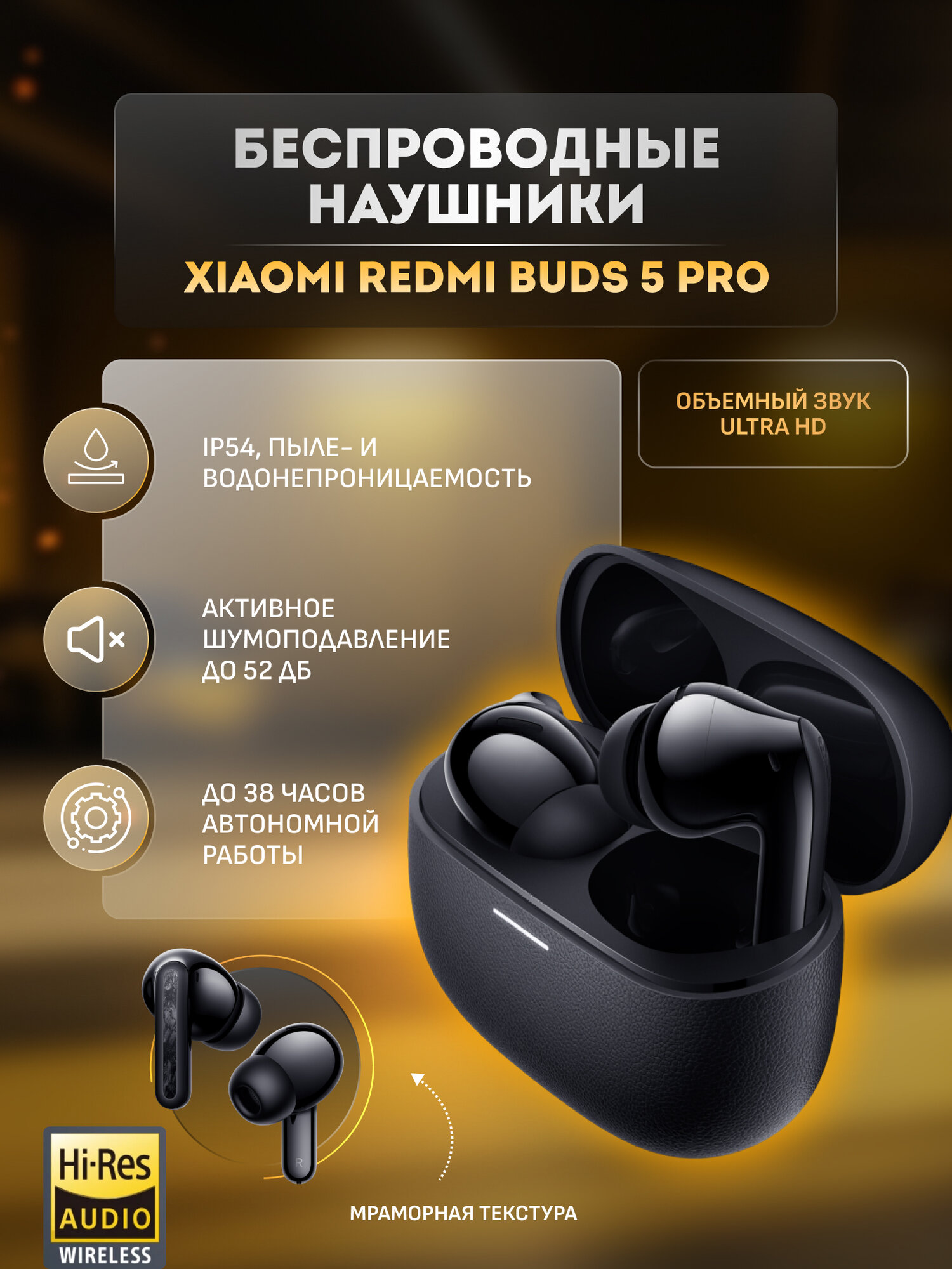 Купить Беспроводные наушники Redmi Buds 5 Pro, Midnight Black (Черный), внутриканальные, BT 5.3, 2023
