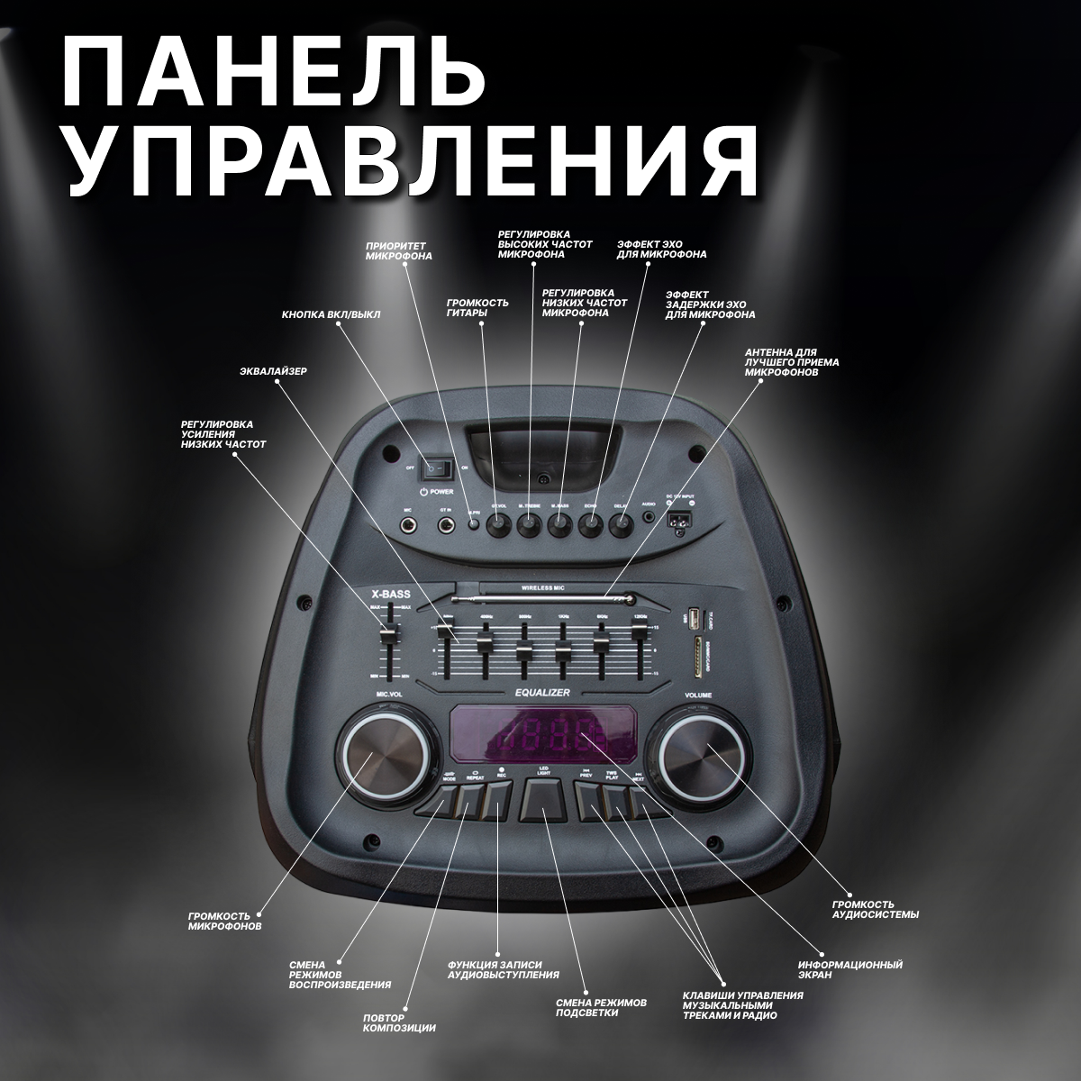 | Дополнительная информация | комплектация: колонка, 2 Беспроводных микрофона, пульт ДУ, инструкция |