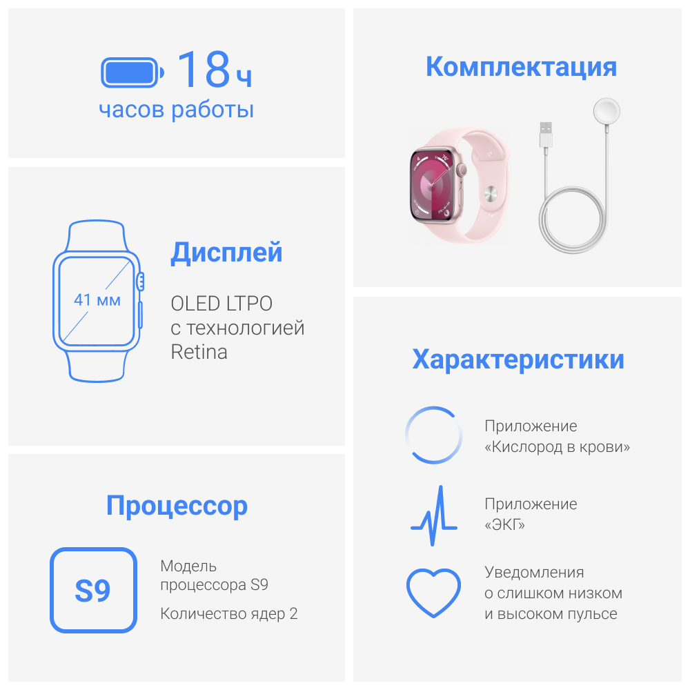 Умные часы Apple Watch Series 9 41 мм Aluminium Case Sport Band (Розовый) интересное: