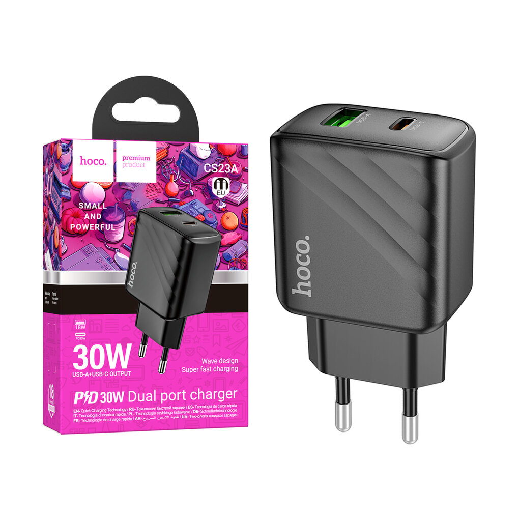Быстрое зарядное устройство Hoco CS23A Sunlight dual port PD30W+QC3.0 charger black