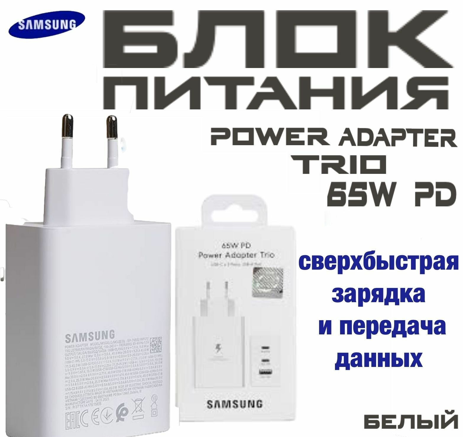 Зарядное устройство для Samsung EP-T6530NBEGWW 65 Вт + кабель N975 Type-C черный