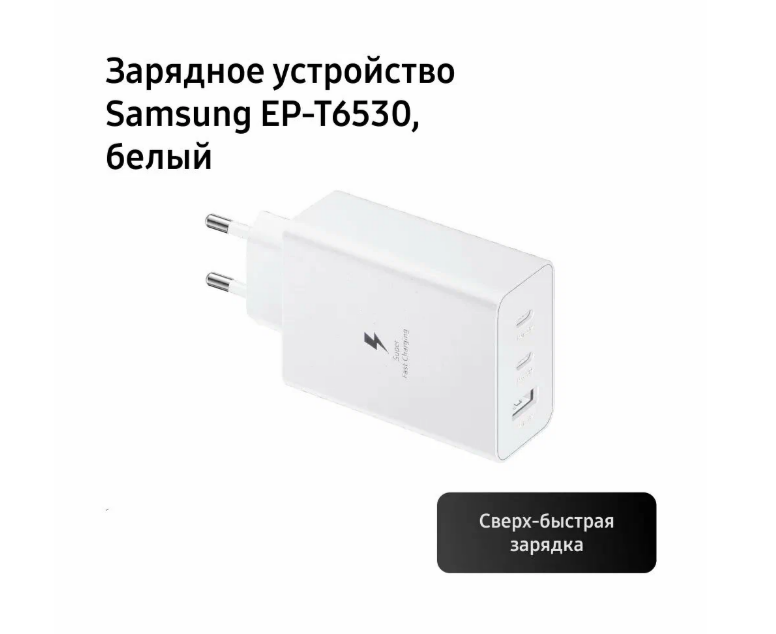 Ниже Вы можете прочитать отзывы на Зарядное устройство Samsung EP-T6530, белое, с быстрой зарядкой, 3 разъема, ознакомится с подробными характеристиками, посмотреть интересные обзоры и фотографии на Зарядное устройство Samsung EP-T6530, белое, с быстрой зарядкой, 3 разъема.
