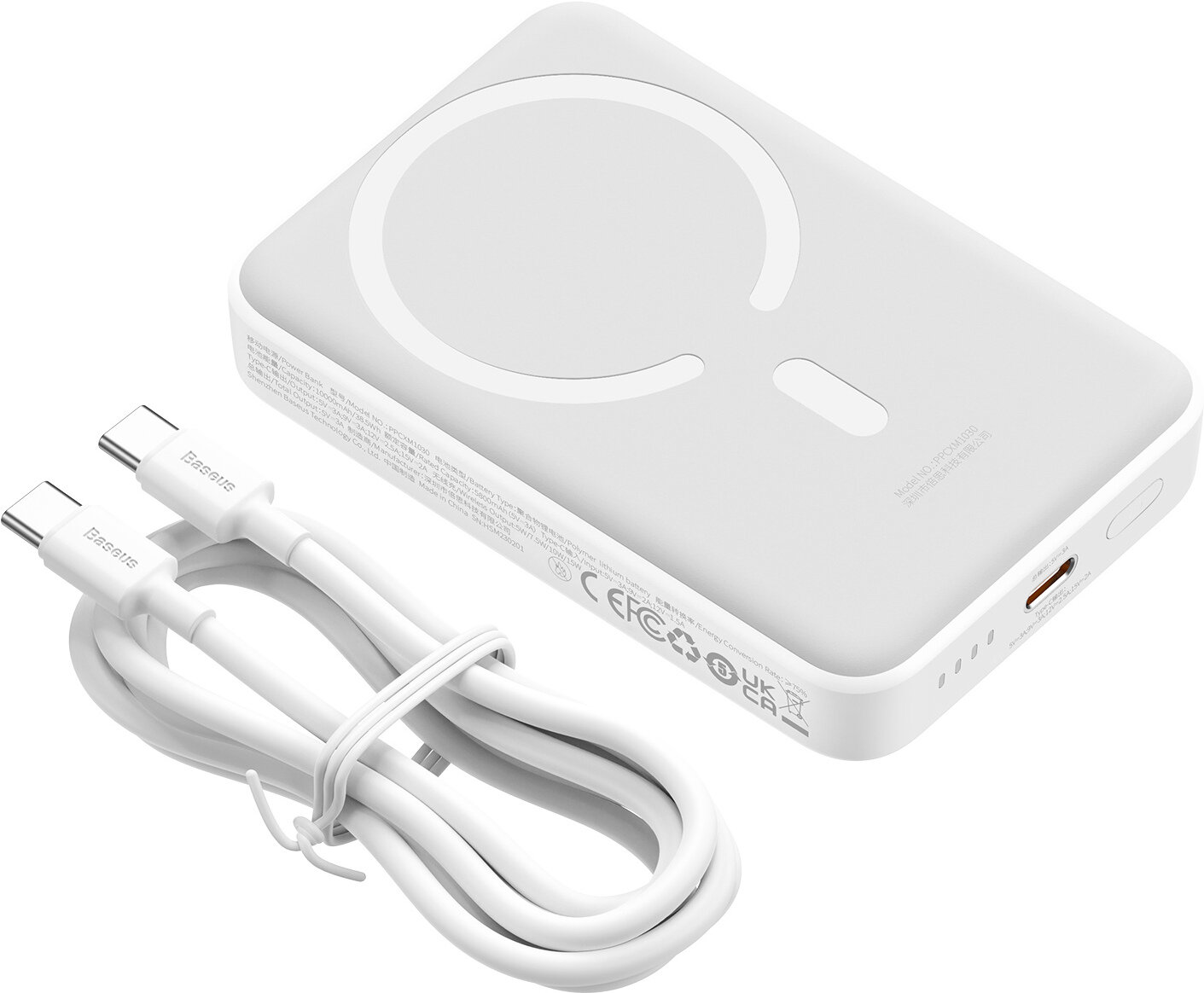 Купить Внешний аккумулятор OS-Baseus Magnetic Mini Wireless Fast Charge Power Bank 10000mAh 30W с кабелем Type-C - Type-C 30cm (PPCX110202) Белый