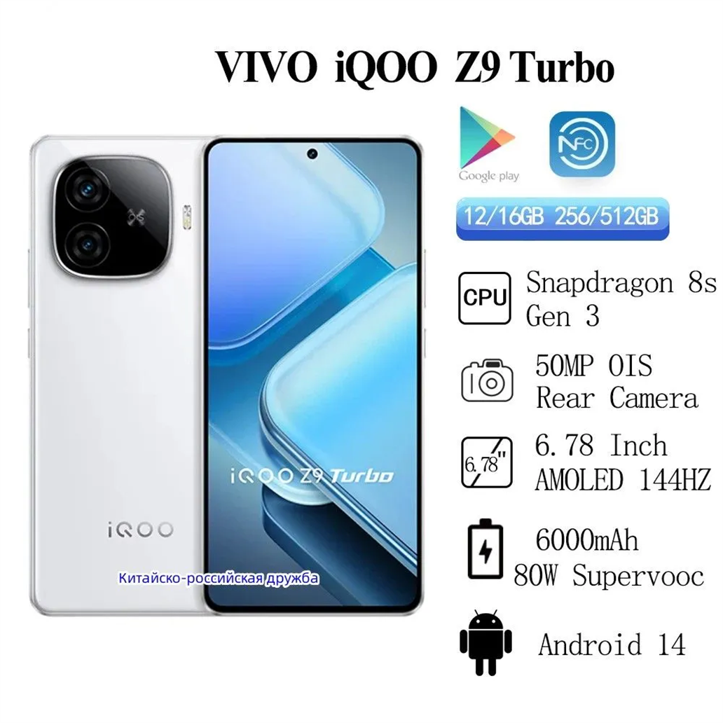 Новинка VIVO IQOO Z9 Turbo Snapdragon 8s Gen 3 6,78 дюйма AMOLED 144 Гц 50MP задняя камера OIS 6000 мАч 80 Вт SuperVOOC NFC OTA обновление