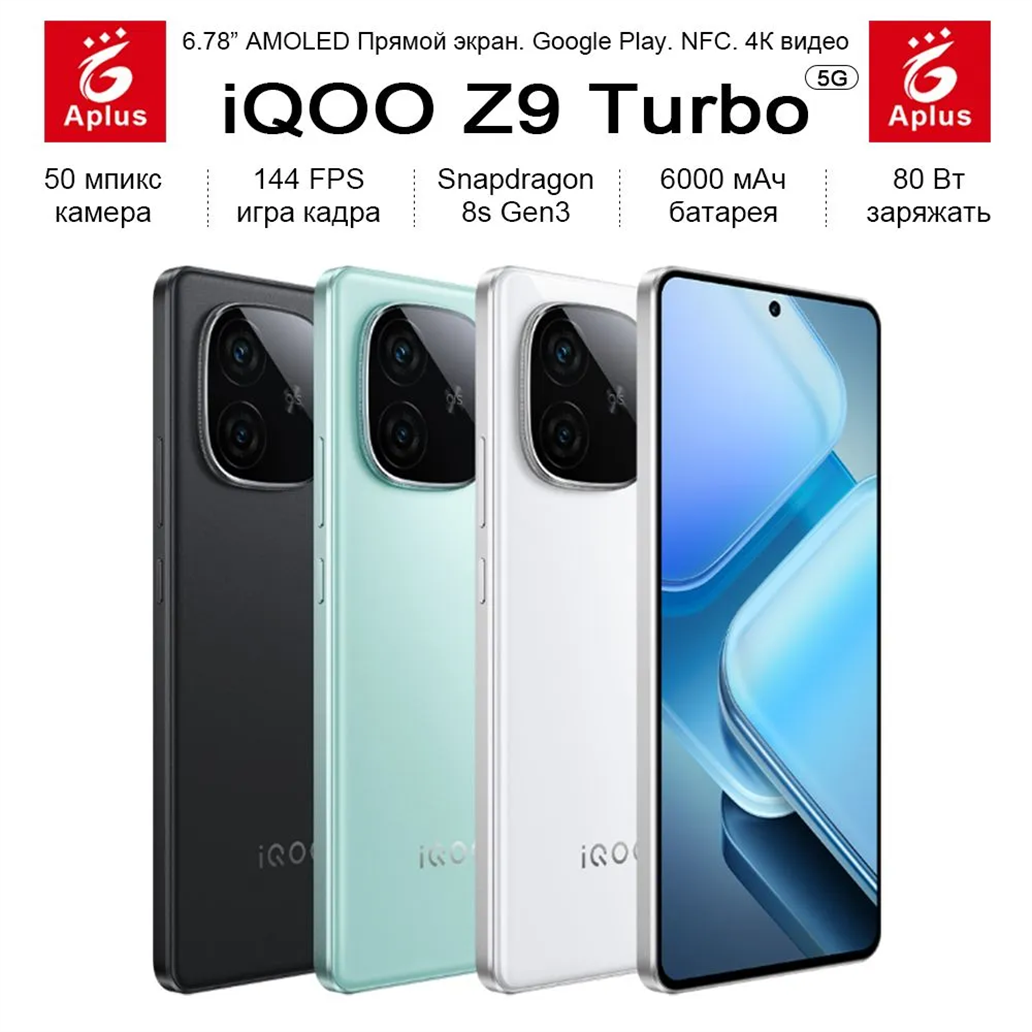 Новинка VIVO IQOO Z9 Turbo Snapdragon 8s Gen 3 6,78 дюйма AMOLED 144 Гц 50MP задняя камера OIS 6000 мАч 80 Вт SuperVOOC NFC OTA обновление