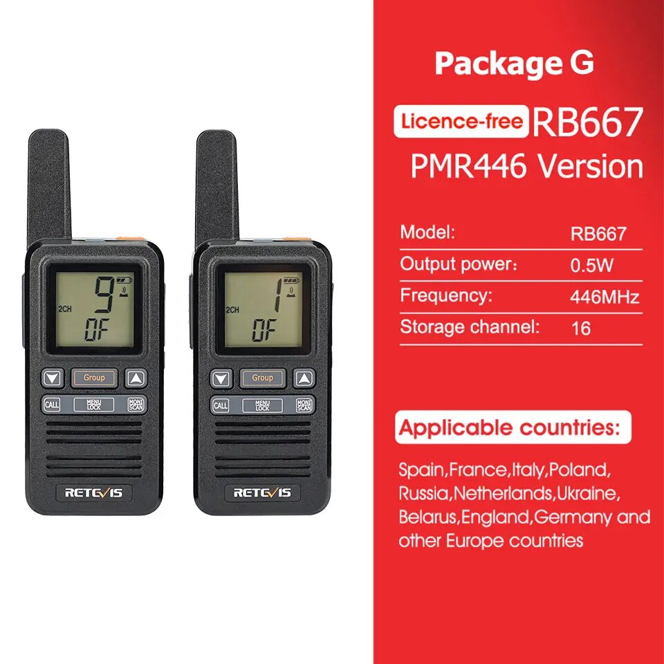 Купить Портативная рация Retevis RB667, 4 шт, 2 Pcs Package G