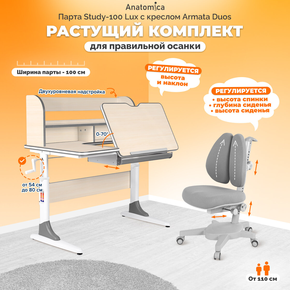 Купить Комплект Anatomica парта + кресло, цвет клен/серый с серым креслом
