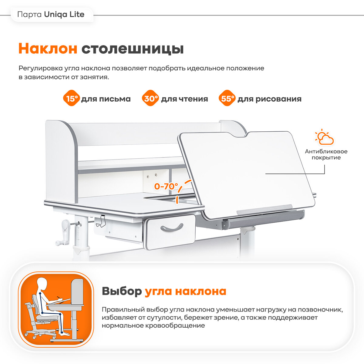 Купить Комплект Anatomica парта + кресло, цвет белый/серый с серым креслом