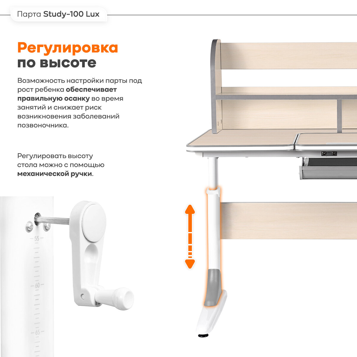 Растущая парта для школьника Rumbik Smart серая, детский деревянный письменный стол с регулировкой высоты
