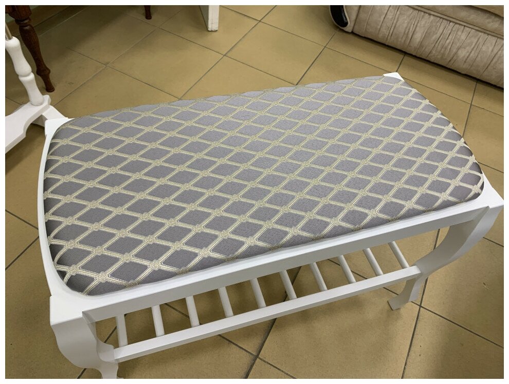 Банкетка для обуви "Классик 16" белая, жаккард серый, обивка -текстиль, длина -67 см
