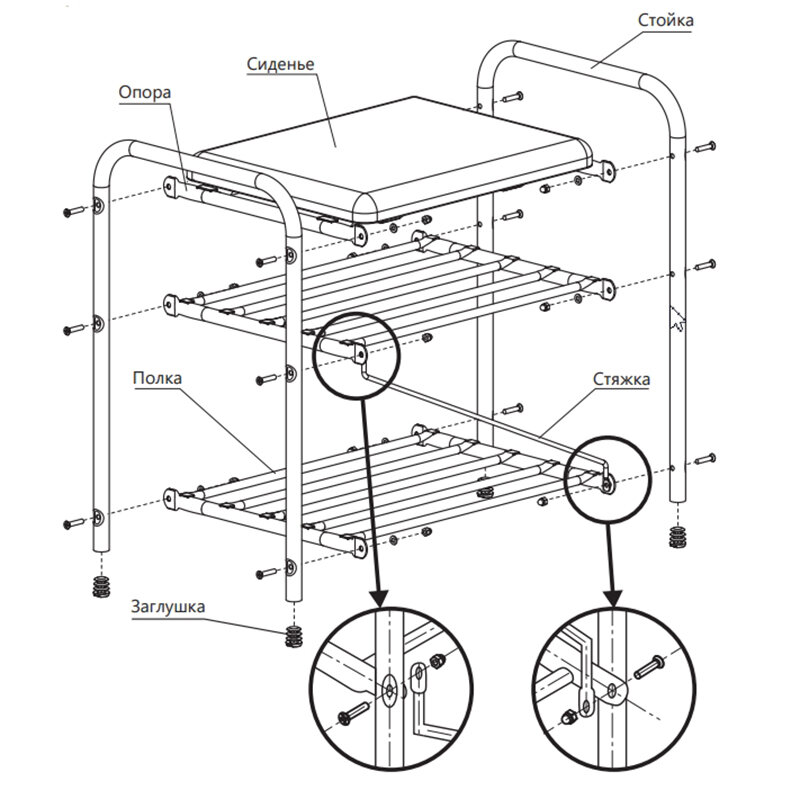 | Дополнительная информация | размер сиденья (ДхШ): 390х300мм, высота между полками: 200/140мм |
