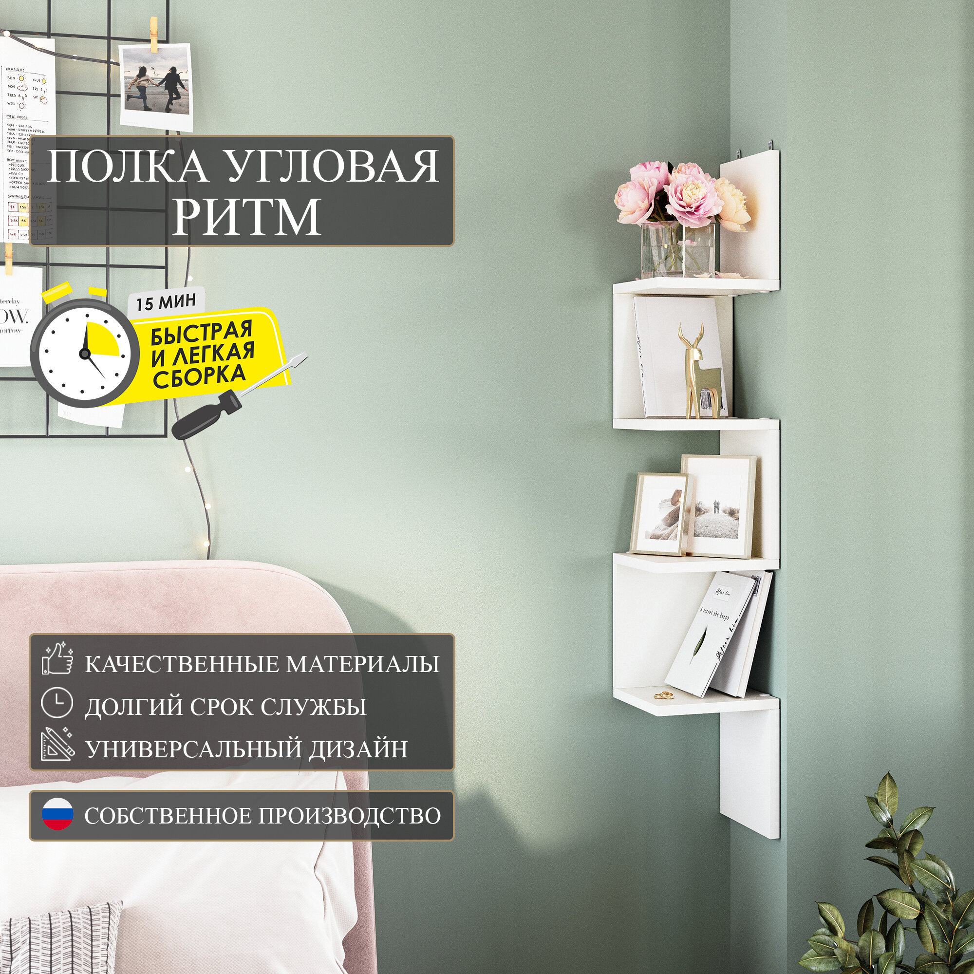Полка настенная угловая Граникум "Ритм", универсальная, белая, ЛДСП интересное: