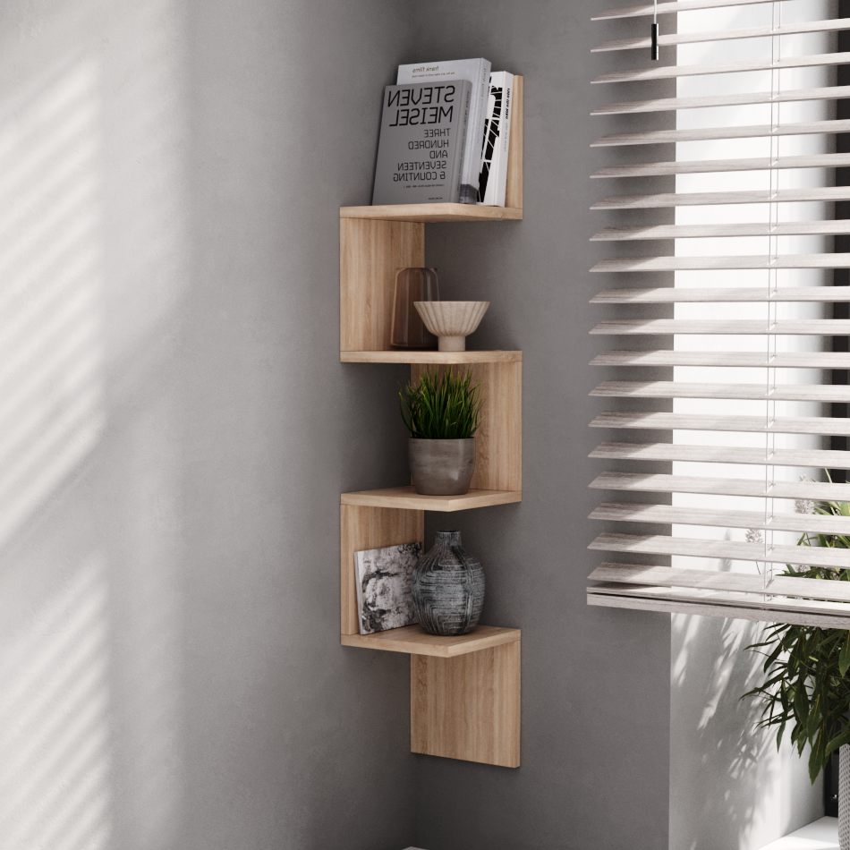 Купить Полка настенная угловая Граникум "Ритм", универсальная, дуб сонома, ЛДСП