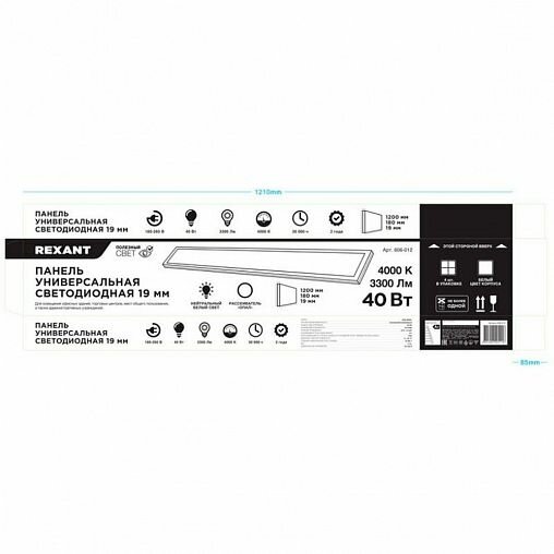 Универсальная светодиодная панель REXANT 19 мм опал 1200х180 40 Вт 180-260 В IP20 3300 Лм 6500 K холодный свет
