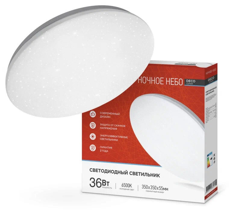 СохранитьНастенно-потолочный светильник IN Home DECO 36Вт 230В 6500К 2340лм 350х55мм ночное небо 4690612033570 интересное: