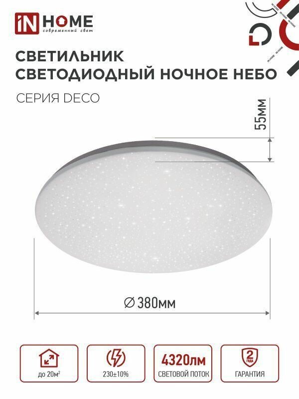 Светильник светодиодный DECO ночное небо 48Вт 4000К 4320лм 230В 380х55мм IN HOME 4690612038650