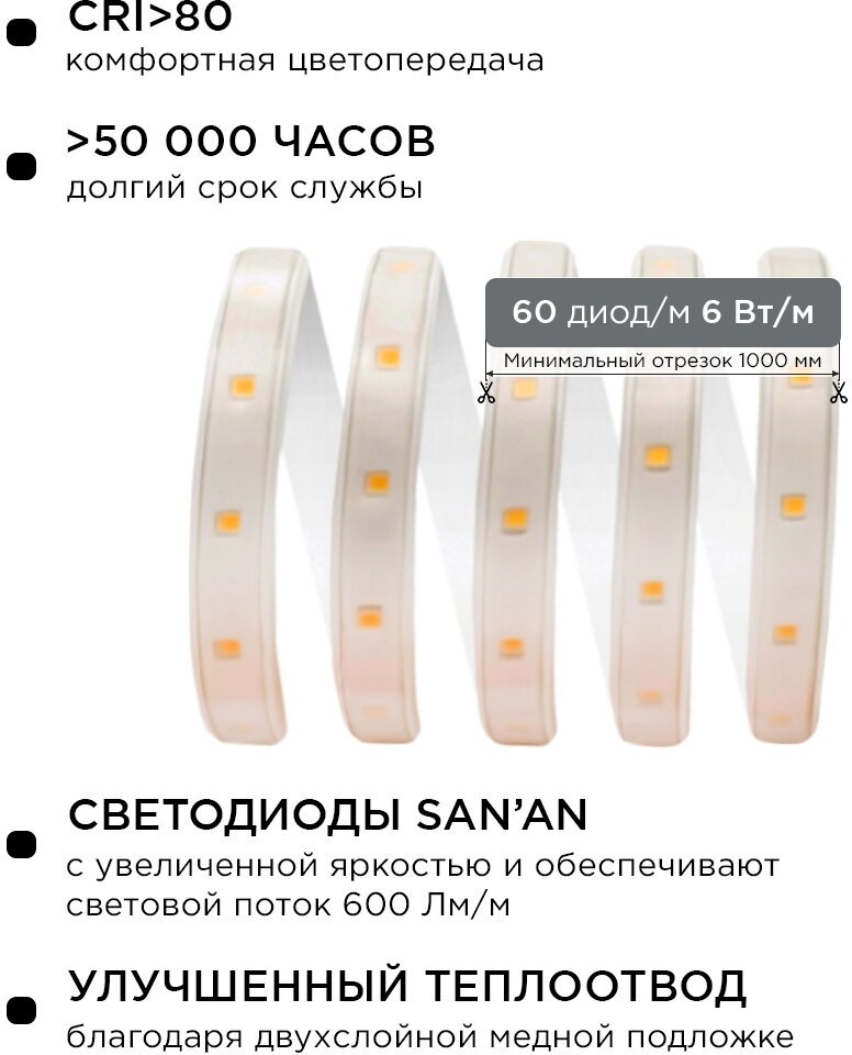 Светодиодная влагозащищенная лента Apeyron 6W/m 60LED/m 2835SMD холодный белый 5M 10-55