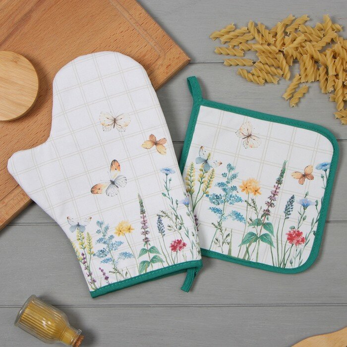 Купить Набор кух. Этель"Полевые цветы" варежка-прихватка 20х28см, прихватка 19х19см,100% хл Этель 9892102