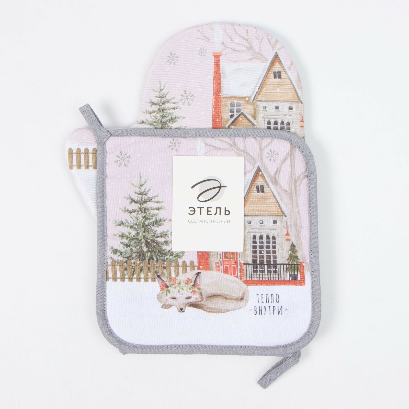 Купить Набор кухонный новогодний Этель "Звери в городе": прихватка 19х19 см, Варежка-прихватка новогодняя 20х28 см, 100% хл
