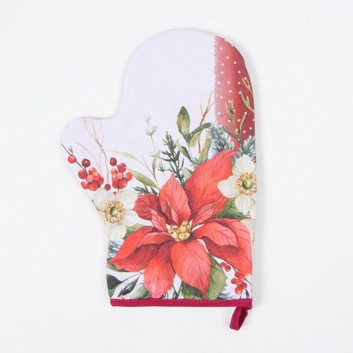 Купить Варежка-Прихватка новогодняя "Этель" "Пуансеттия" 20х28 см, 100% хл, ватин 250 г/м2