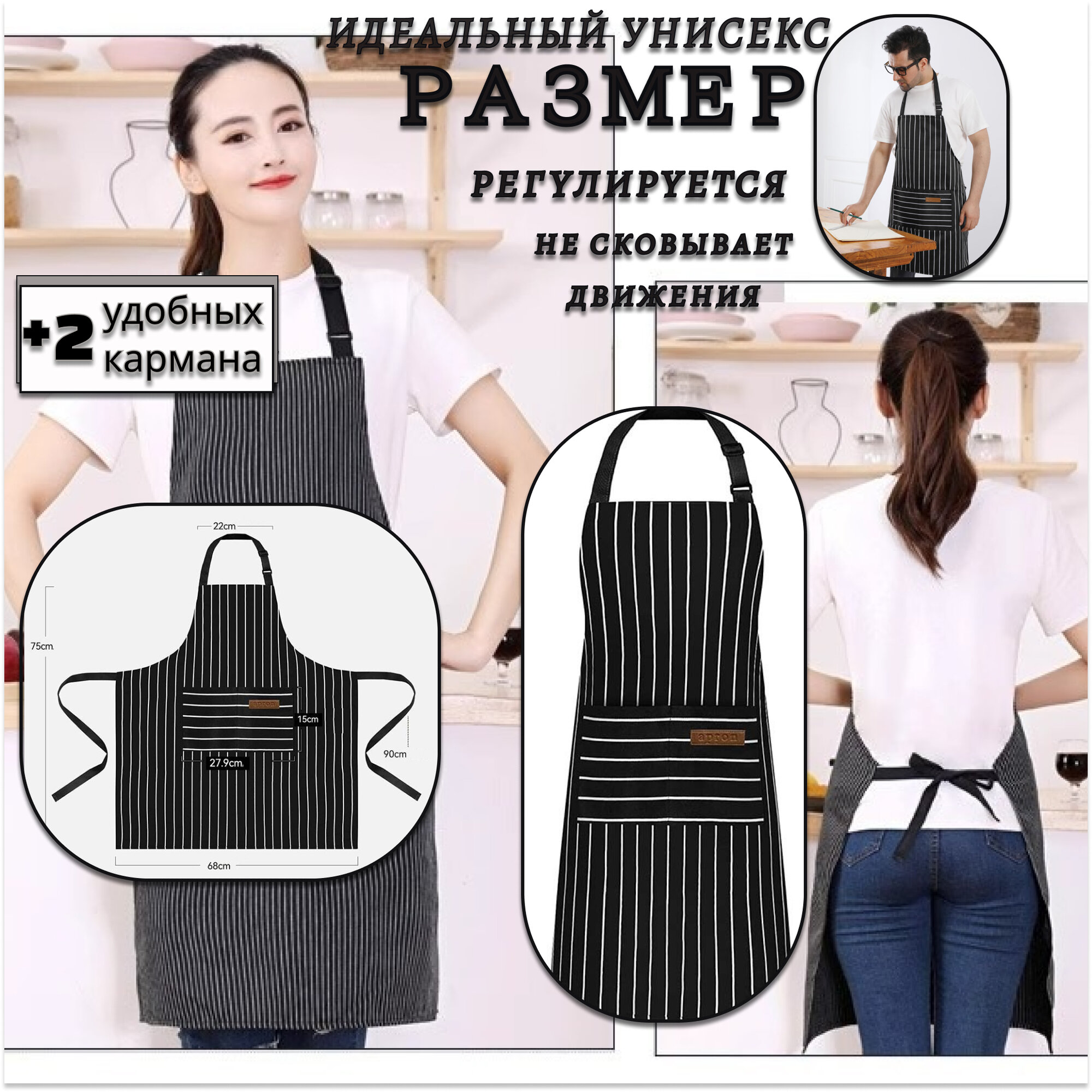 СохранитьФартук универсальный для официанта, бармена, бариста, парикмахера, продавца, повара, кондитера, флориста, кухонный, рабочий. Цвет полосатый черный. интересное: