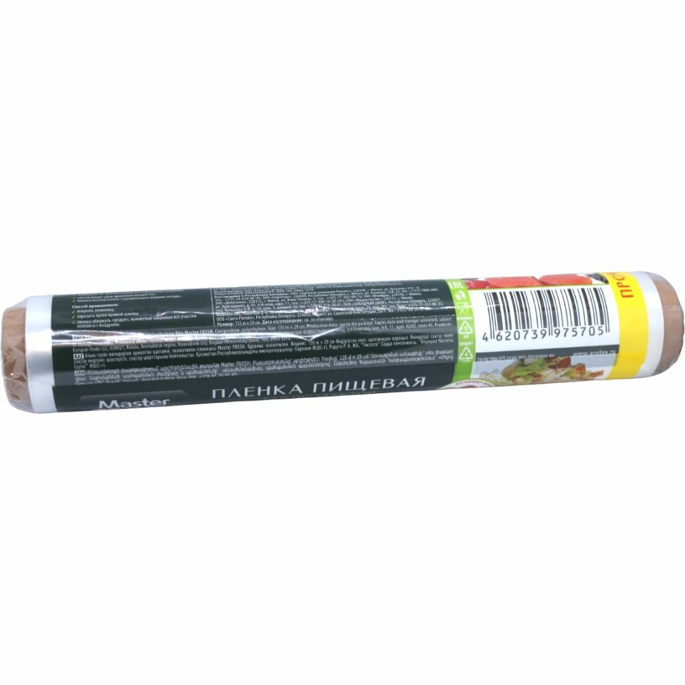 Пищевая пленка Master FRESH, 135 м х 29 см, 135, 6 мкм х 29 см, 1 шт. интересное: