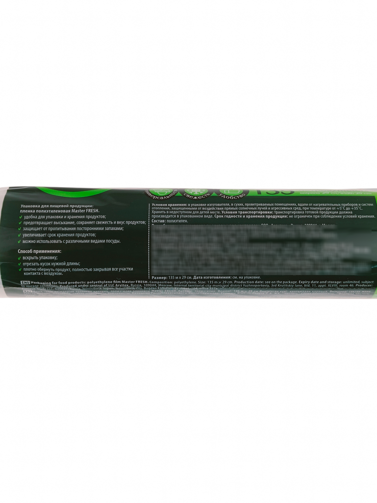| Комплектация | Master Fresh Пленка пищевая суперэластичная, 29 см, 135 м, 1 шт |