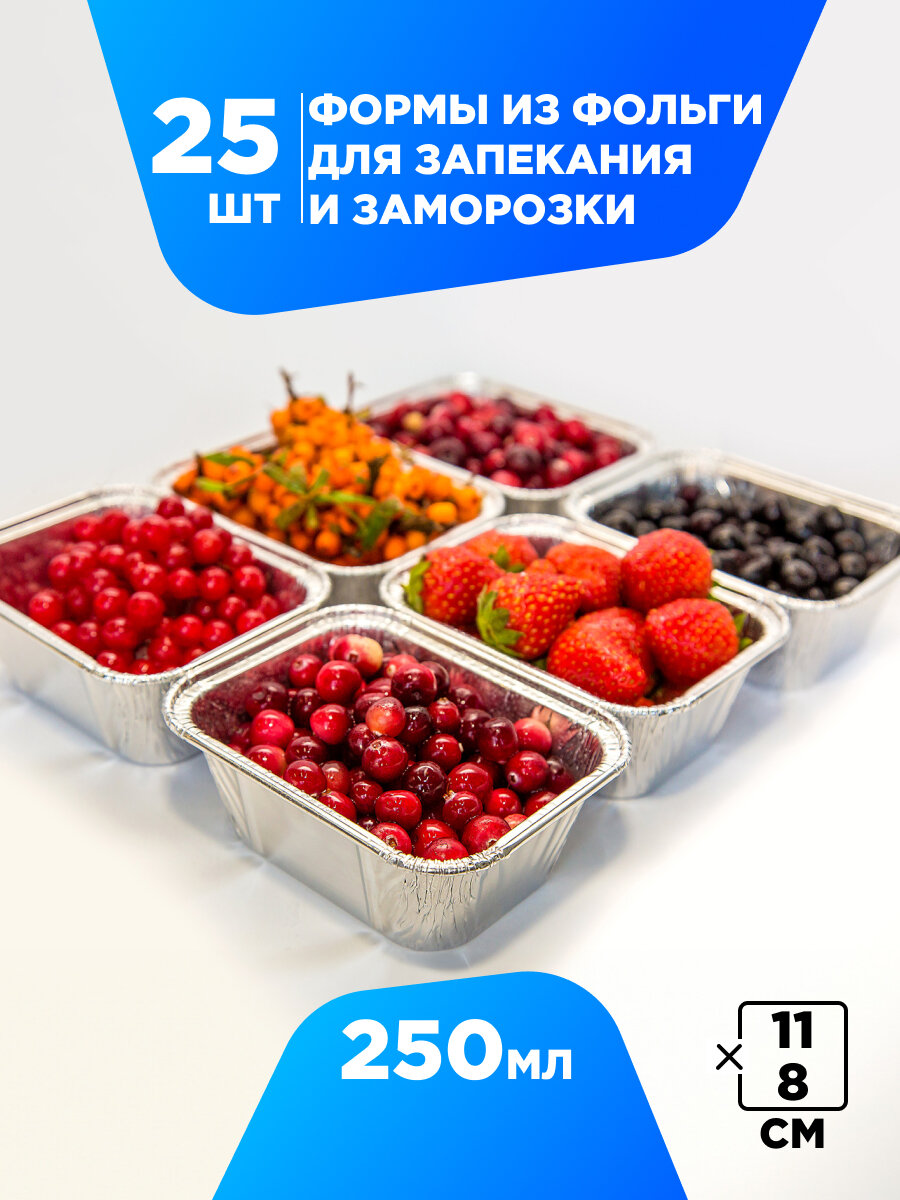 Формы из алюминиевой фольги для запекания Formacia, 25 шт, прямоугольные, одноразовые, размер 114 x 89 х 42 мм , объем: 250 мл подходят для духовки, гриля, заморозки