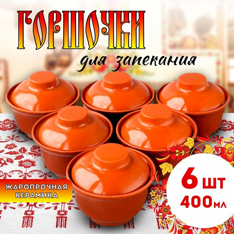 Горшочки для запекания 400 мл 6 шт., жаропрочная керамика, ртиопт интересное: