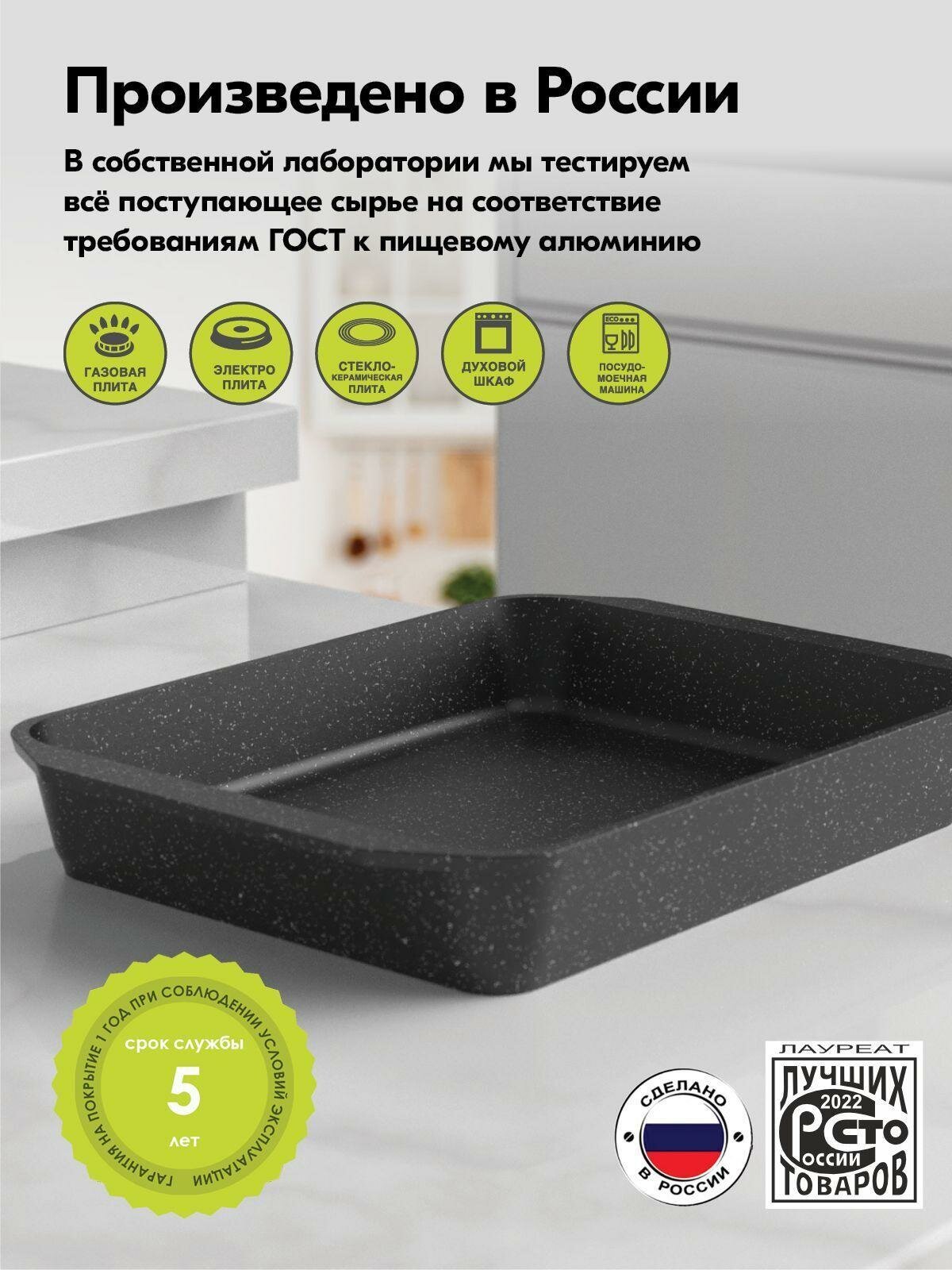 Противень "Мечта" 36*27 см Гранит с антипригарным покрытием BLACK, подходит для духовки и посудомоечной машины