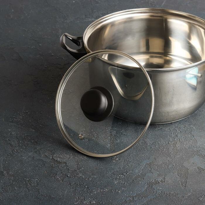 Крышка стеклянная TimA / ТимА низкая с ручкой и пароотводом, диаметр 180мм / для сковороды или кастрюли / аксессуары для кухни