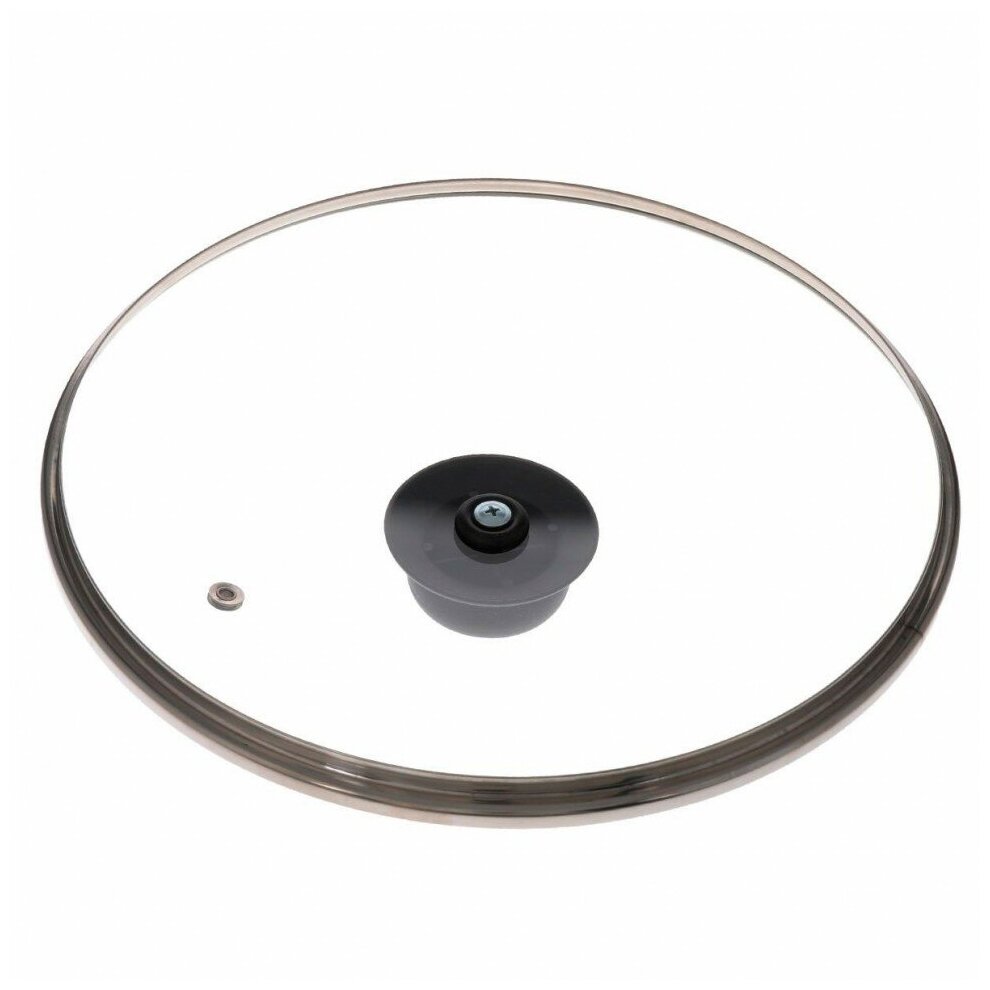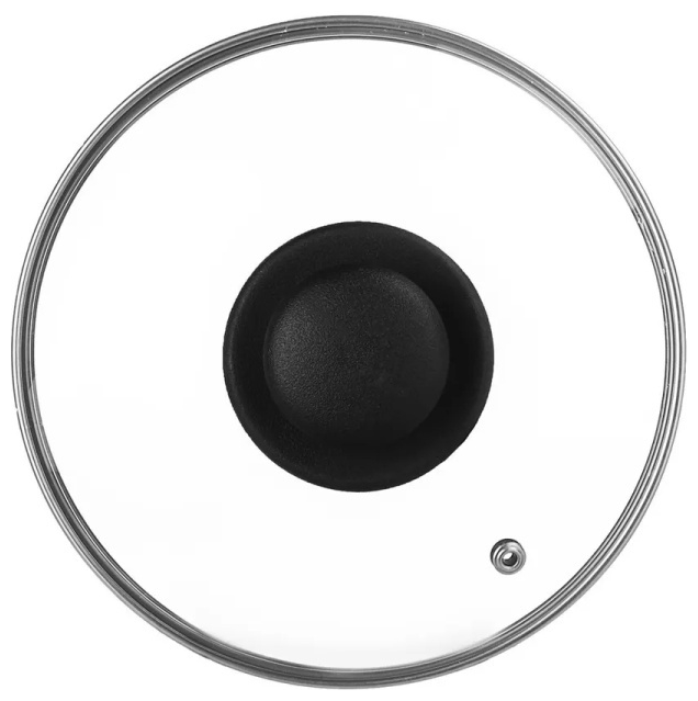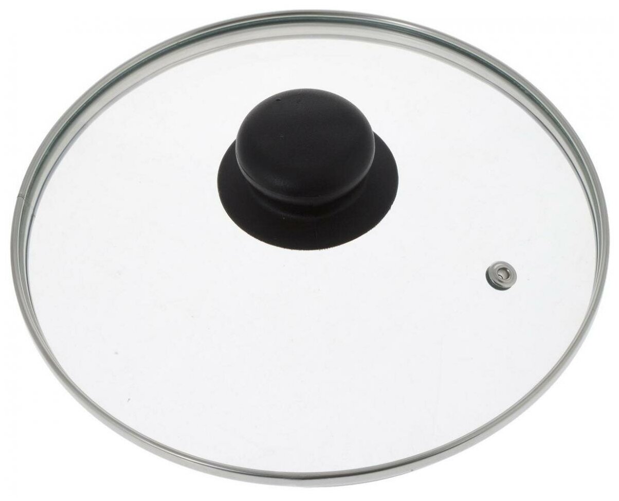 Крышка стеклянная TimA с ручкой (полипропилен) с металлическим ободком и пароотводом, д.28 см