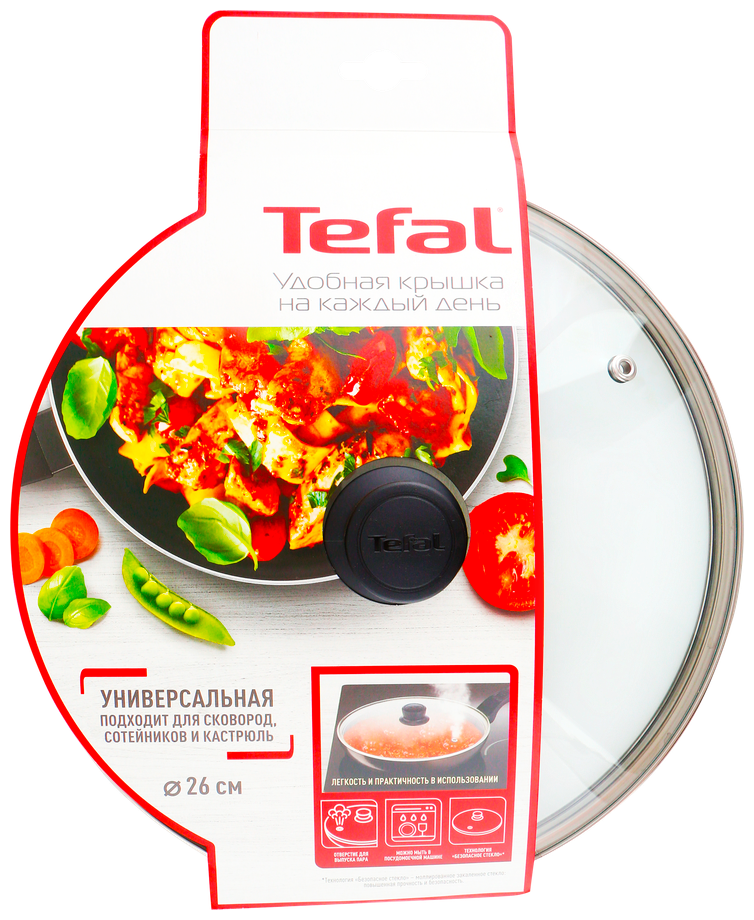 Крышка стеклянная 26 см Tefal Cocoon универсальная