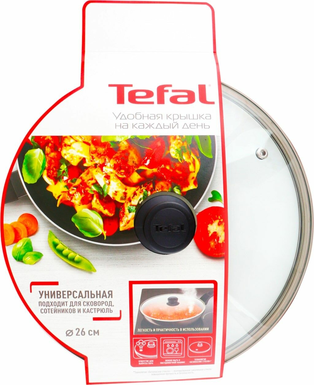 Купить Крышка стеклянная 26 см Tefal Cocoon универсальная