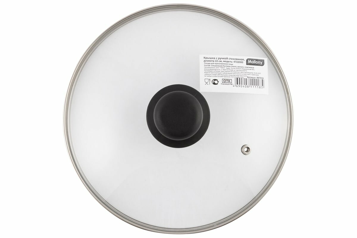 Купить Другие товары 12 Mallony Крышка d=22см, стекло/металл/пластик, метал.обод, паровыпуск, 987016, Mallony